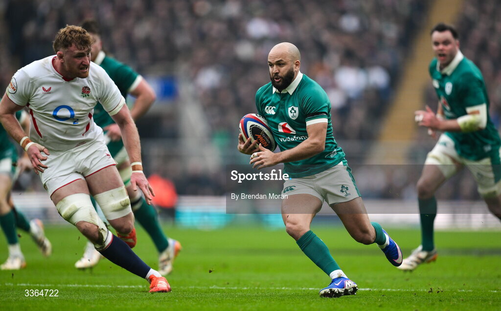 21 February 2026; Jamison Gibson-Park of Ireland makes a break during the Guinness 6 Nations Rugby Championship match between England and Ireland at the Allianz Stadium in Twickenham, England. Photo by Brendan Moran/Sportsfile