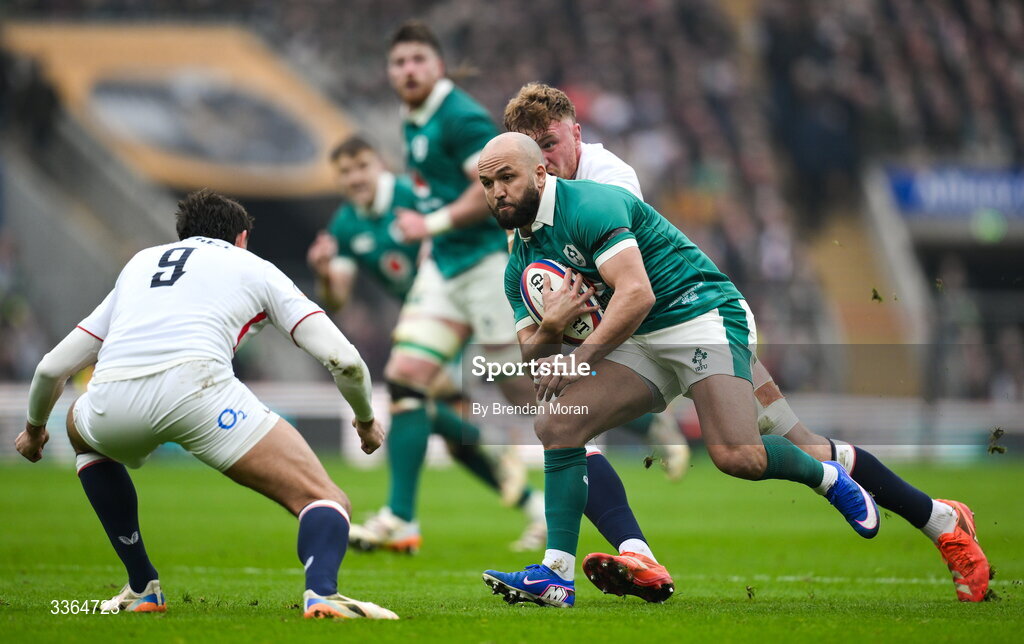 21 February 2026; Jamison Gibson-Park of Ireland in action against Alex Mitchell of England during the Guinness 6 Nations Rugby Championship match between England and Ireland at the Allianz Stadium in Twickenham, England. Photo by Brendan Moran/Sportsfile