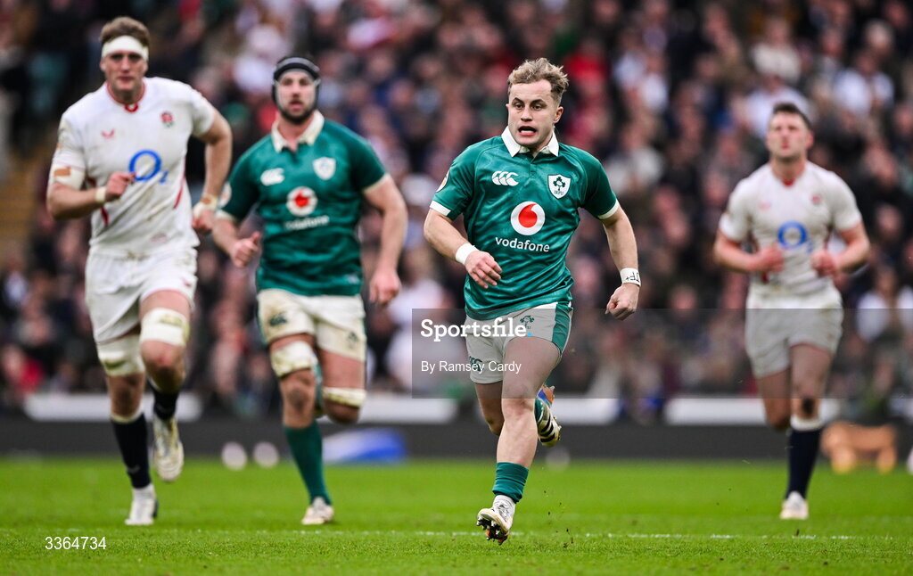 21 February 2026; Craig Casey of Ireland during the Guinness 6 Nations Rugby Championship match between England and Ireland at the Allianz Stadium in Twickenham, England. Photo by Ramsey Cardy/Sportsfile
