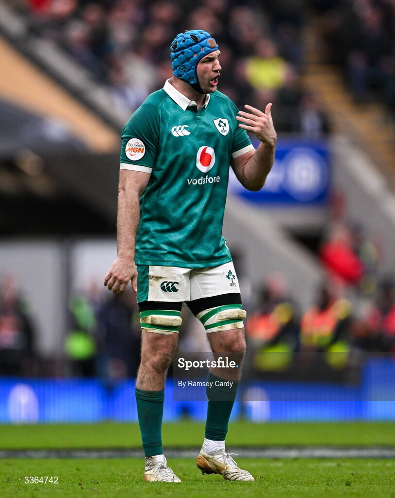 21 February 2026; Tadhg Beirne of Ireland during the Guinness 6 Nations Rugby Championship match between England and Ireland at the Allianz Stadium in Twickenham, England. Photo by Ramsey Cardy/Sportsfile