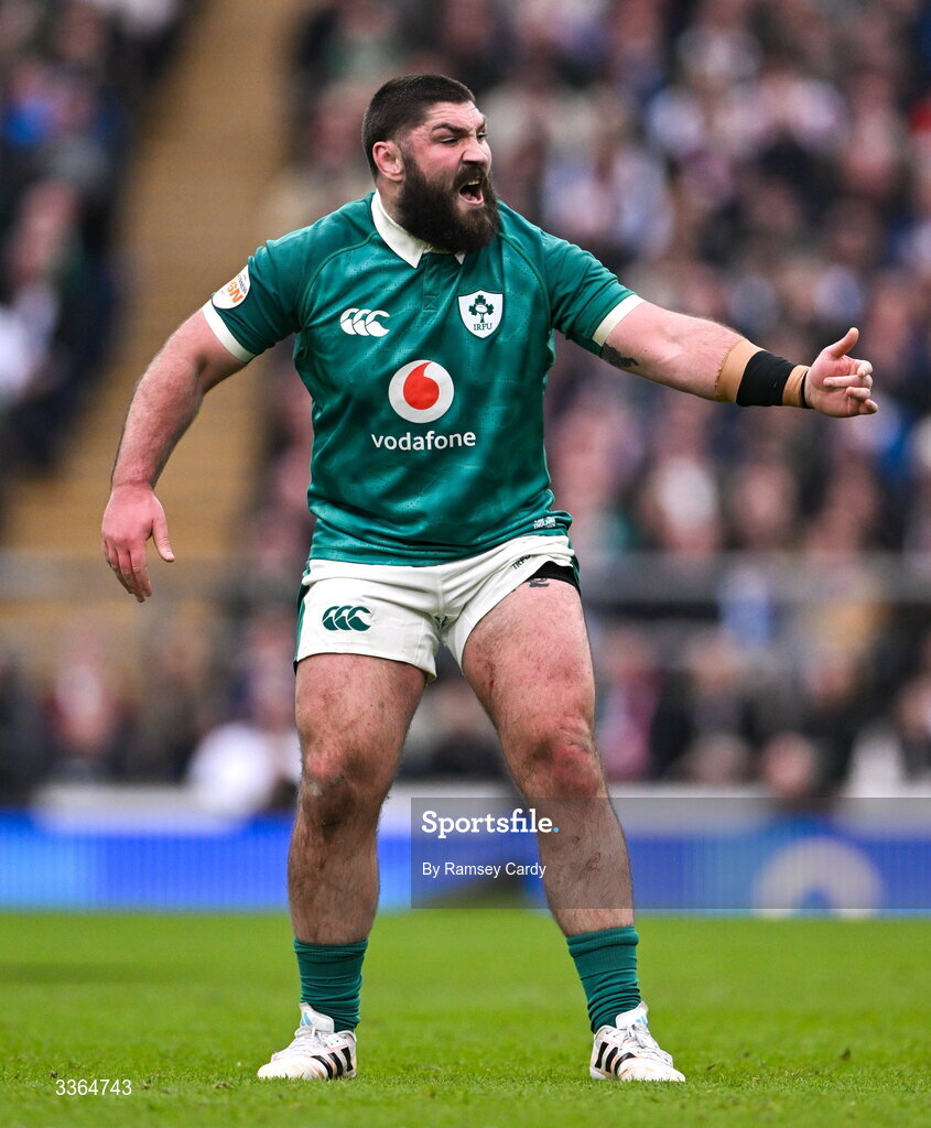 21 February 2026; Tom O’Toole of Ireland during the Guinness 6 Nations Rugby Championship match between England and Ireland at the Allianz Stadium in Twickenham, England. Photo by Ramsey Cardy/Sportsfile