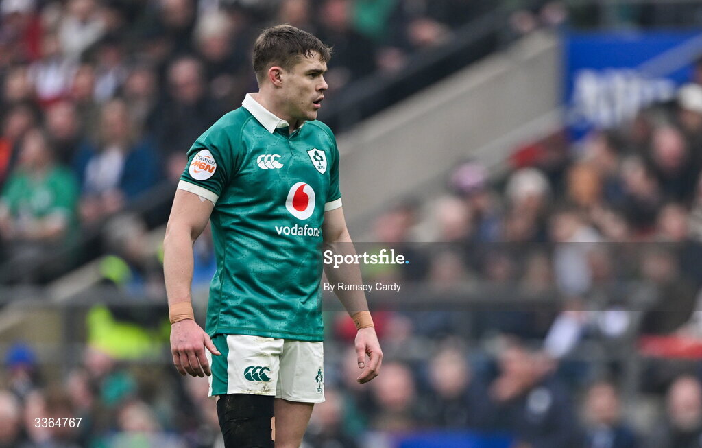 21 February 2026; Garry Ringrose of Ireland during the Guinness 6 Nations Rugby Championship match between England and Ireland at the Allianz Stadium in Twickenham, England. Photo by Ramsey Cardy/Sportsfile
