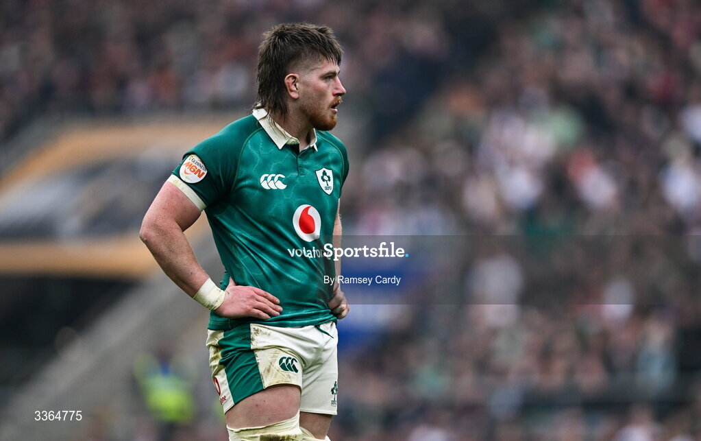 21 February 2026; Joe McCarthy of Ireland during the Guinness 6 Nations Rugby Championship match between England and Ireland at the Allianz Stadium in Twickenham, England. Photo by Ramsey Cardy/Sportsfile