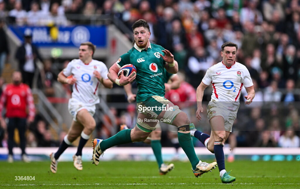 21 February 2026; Joe McCarthy of Ireland during the Guinness 6 Nations Rugby Championship match between England and Ireland at the Allianz Stadium in Twickenham, England. Photo by Ramsey Cardy/Sportsfile