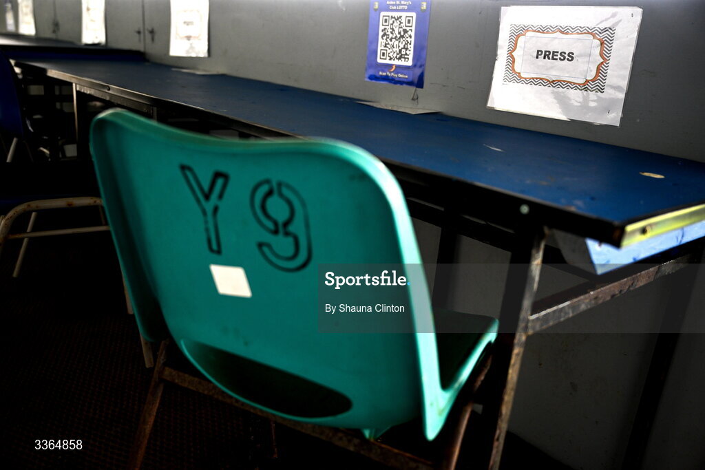 22 February 2026; A general view of the press box before the Allianz Football League Division 2 match between Louth and Tyrone at DEFY Pairc Mhuire in Ardee, Louth. Photo by Shauna Clinton/Sportsfile
