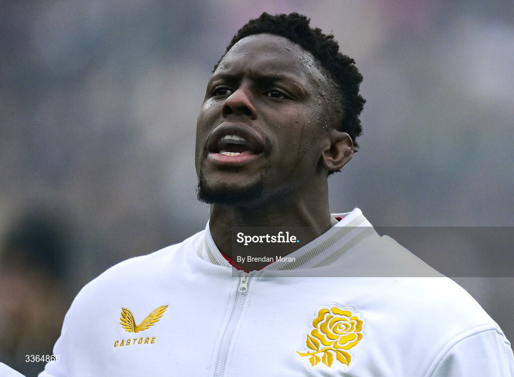 21 February 2026; England captain Maro Itoje during the national anthems before the Guinness 6 Nations Rugby Championship match between England and Ireland at the Allianz Stadium in Twickenham, England. Photo by Brendan Moran/Sportsfile