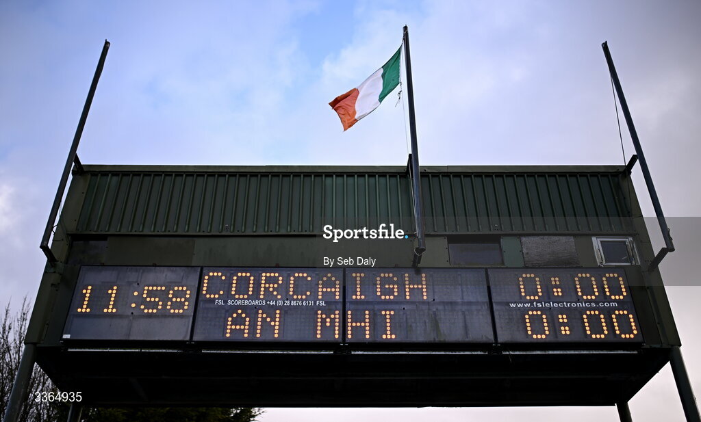 22 February 2026; A view of the scoreboard before the Allianz Football League Division 2 match between Cork and Meath at Páirc Ui Rinn in Cork. Photo by Seb Daly/Sportsfile