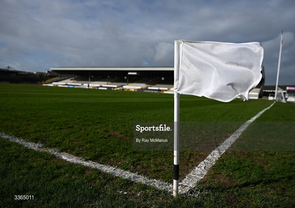 22 February 2026; A corner flag flutters in a strong breeze before the Allianz Hurling League Division 1A match between Kilkenny and Waterford at UPMC Nowlan Park in Kilkenny. Photo by Ray McManus/Sportsfile