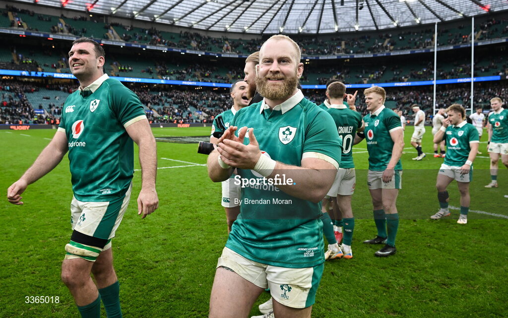 21 February 2026; Jeremy Loughman of Ireland applauds supporters after the Guinness 6 Nations Rugby Championship match between England and Ireland at the Allianz Stadium in Twickenham, England. Photo by Brendan Moran/Sportsfile