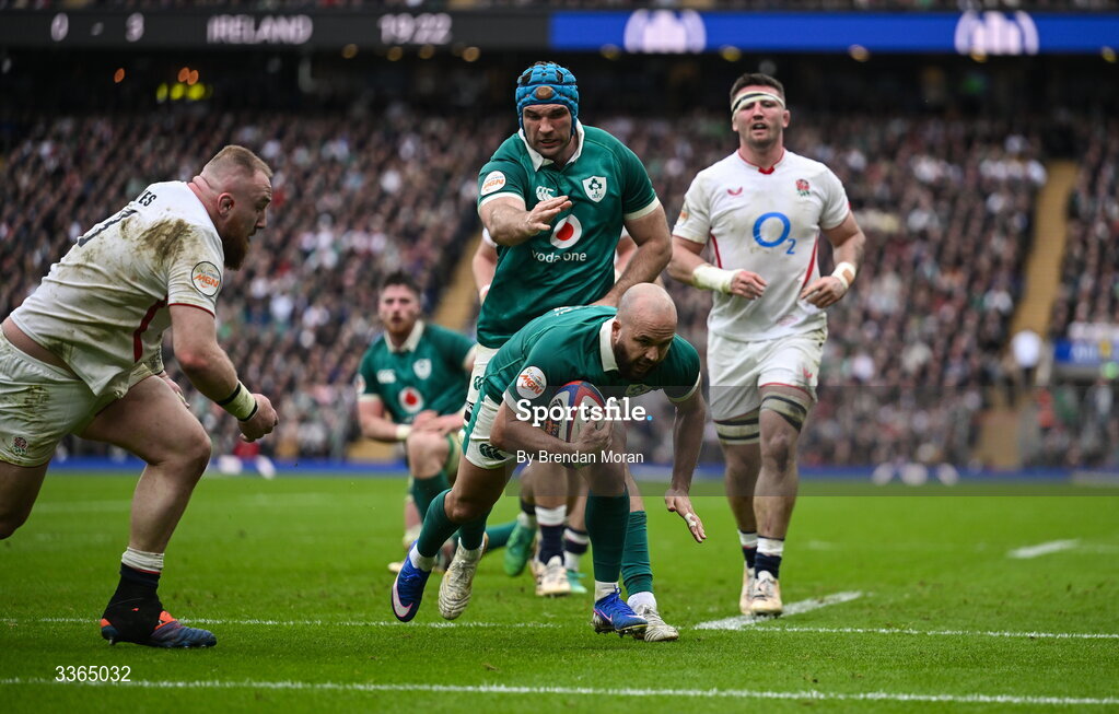 21 February 2026; Jamison Gibson-Park of Ireland scores his side's first try during the Guinness 6 Nations Rugby Championship match between England and Ireland at the Allianz Stadium in Twickenham, England. Photo by Brendan Moran/Sportsfile