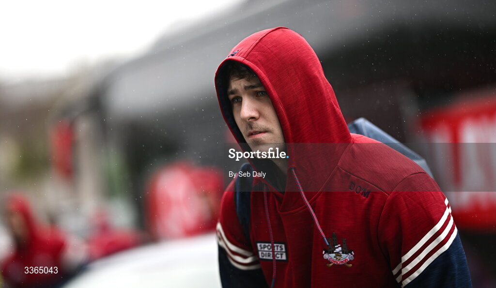 22 February 2026; Cork captain Daniel O’Mahony arrives beforer the Allianz Football League Division 2 match between Cork and Meath at Páirc Ui Rinn in Cork. Photo by Seb Daly/Sportsfile