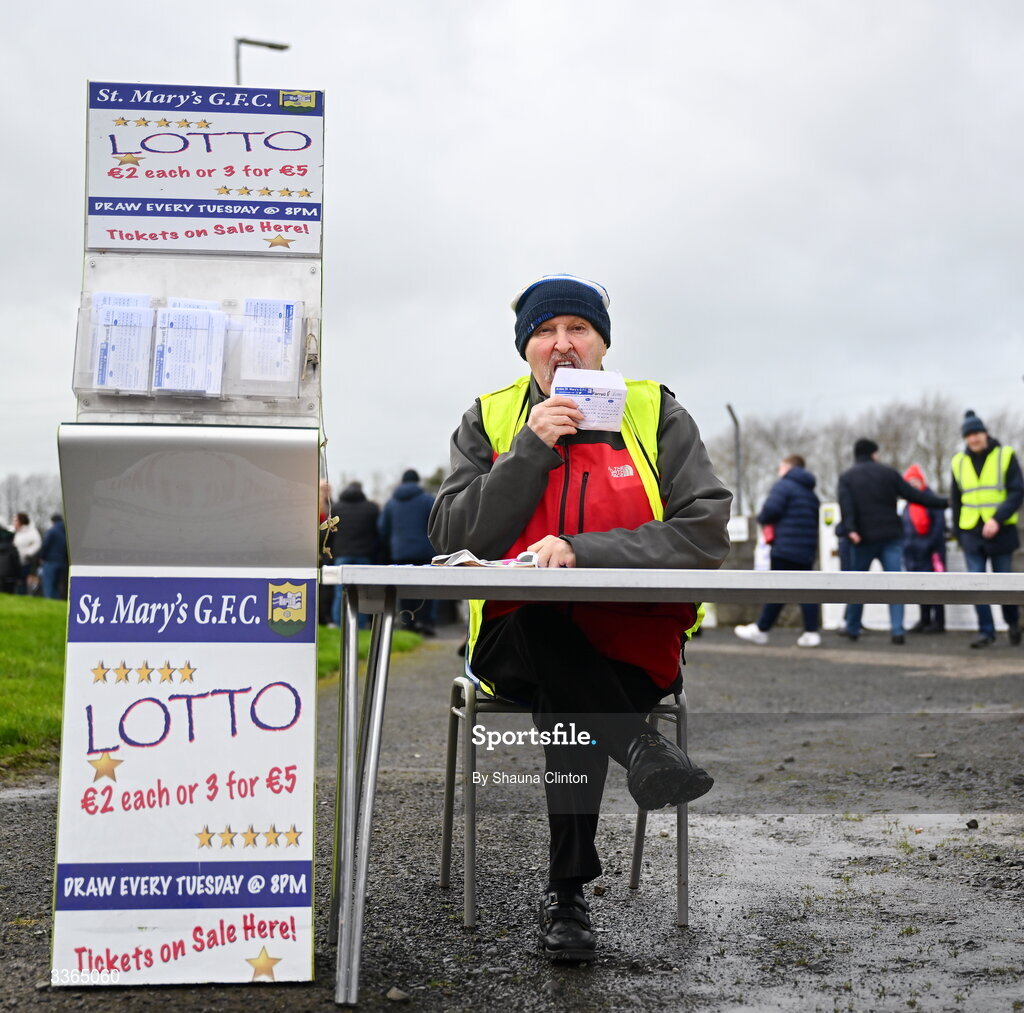 22 February 2026; Club member Peter McCague sells lotto tickets before the Allianz Football League Division 2 match between Louth and Tyrone at DEFY Pairc Mhuire in Ardee, Louth. Photo by Shauna Clinton/Sportsfile