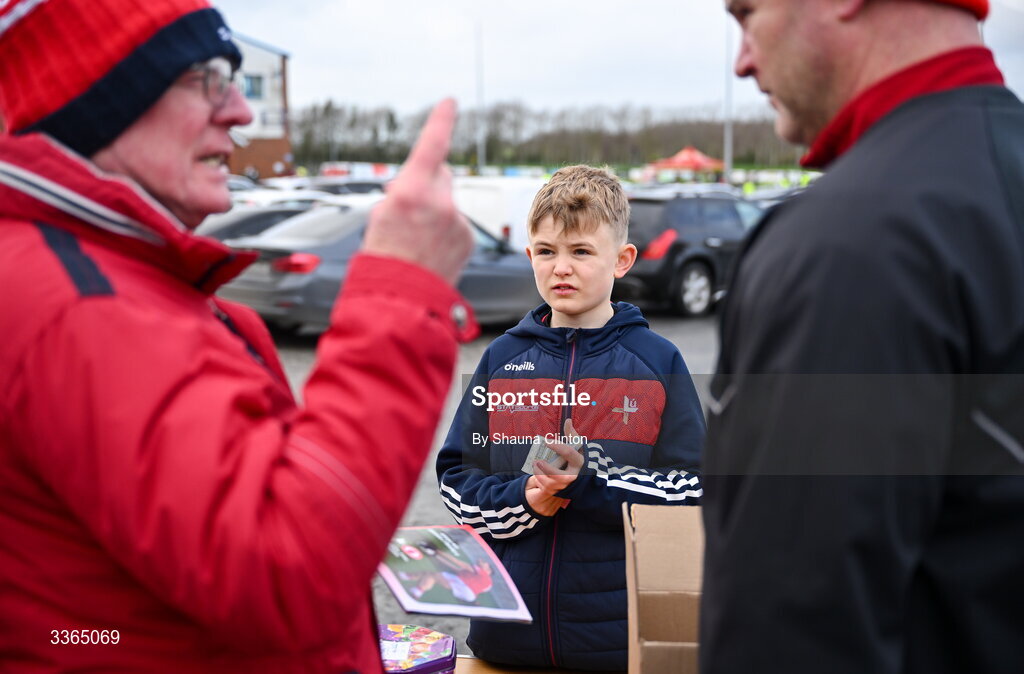 22 February 2026; Programme seller Liam Dowling, from Drogheda, before the Allianz Football League Division 2 match between Louth and Tyrone at DEFY Pairc Mhuire in Ardee, Louth. Photo by Shauna Clinton/Sportsfile