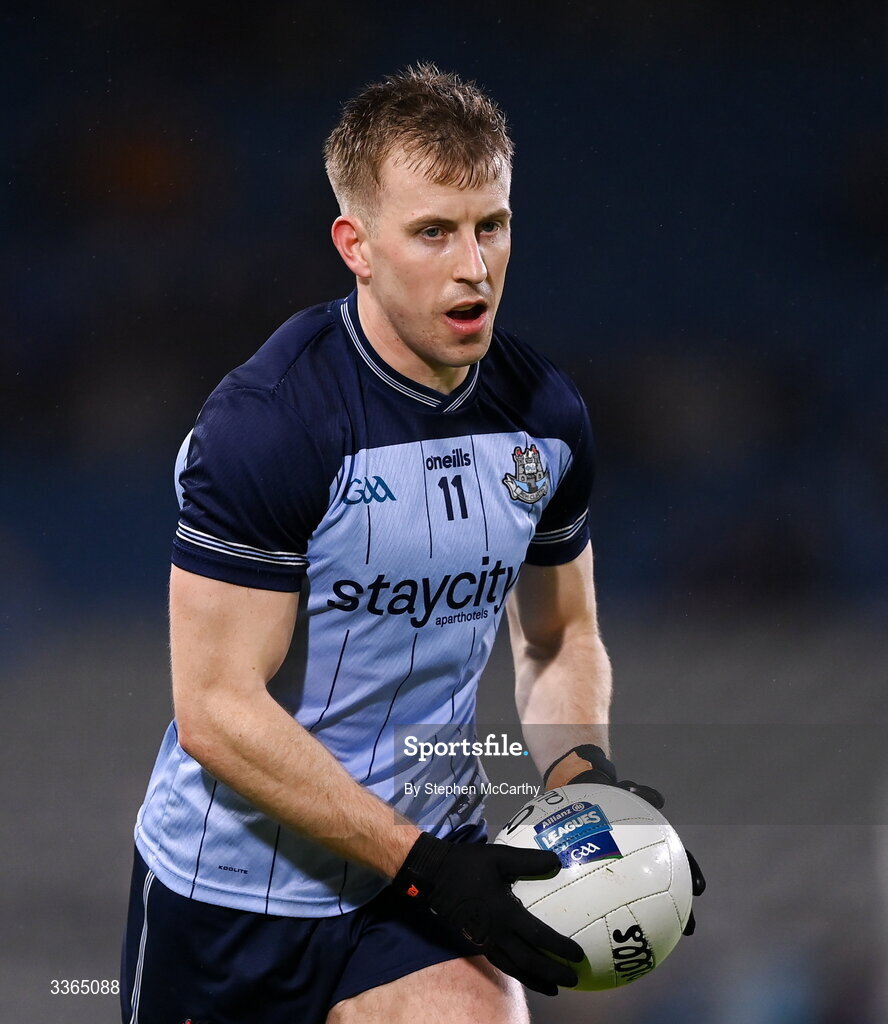 21 February 2026; Seán Bugler of Dublin during the Allianz Football League Division 1 match between Dublin and Kerry at Croke Park in Dublin. Photo by Stephen McCarthy/Sportsfile