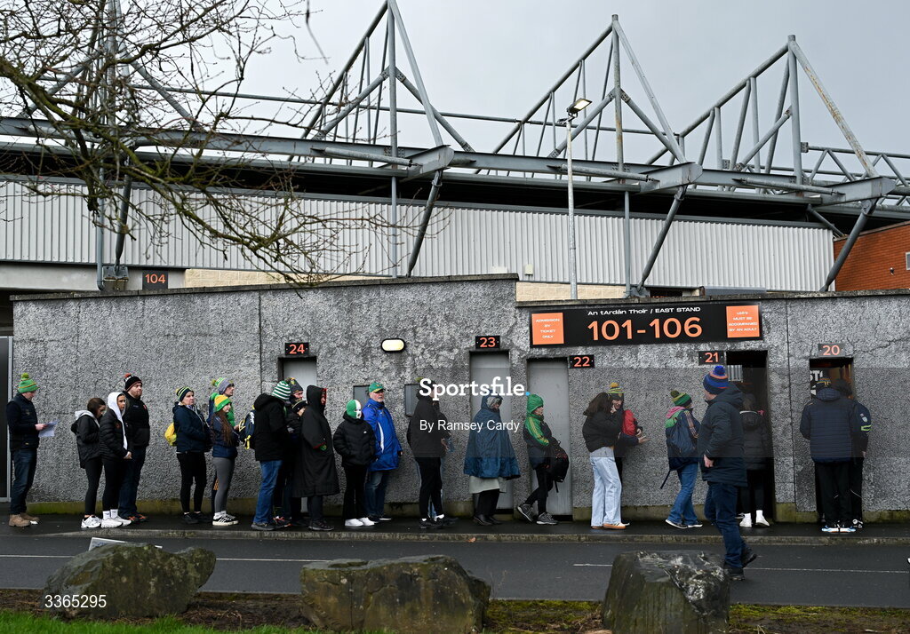 22 February 2026; Supporters queue outside the ground before the Allianz Football League Division 1 match between Armagh and Donegal at BOX-IT Athletic Grounds in Armagh. Photo by Ramsey Cardy/Sportsfile