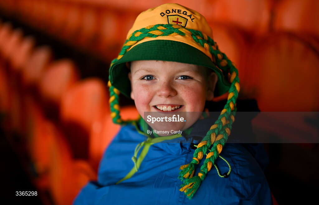 22 February 2026; Donegal supporter Hugh Lesley, age 12, before the Allianz Football League Division 1 match between Armagh and Donegal at BOX-IT Athletic Grounds in Armagh. Photo by Ramsey Cardy/Sportsfile