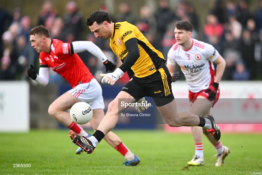 22 February 2026; Tyrone goalkeeper Niall Morgan during the Allianz Football League Division 2 match between Louth and Tyrone at DEFY Pairc Mhuire in Ardee, Louth. Photo by Shauna Clinton/Sportsfile