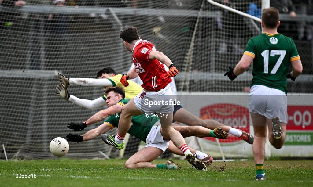 22 February 2026; Chris Óg Jones of Cork scores his side's first goal during the Allianz Football League Division 2 match between Cork and Meath at Páirc Ui Rinn in Cork. Photo by Seb Daly/Sportsfile