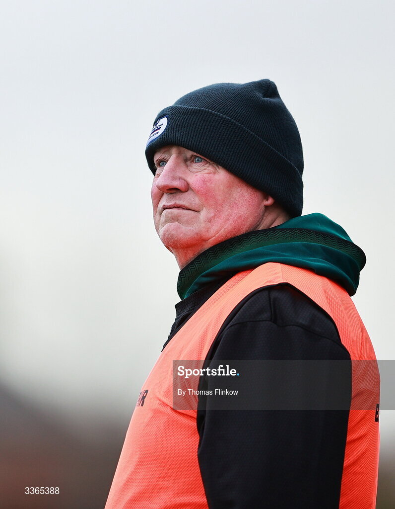 22 February 2026; Carlow manager Pat Bennett during the Allianz Hurling League Division 1A match between Antrim and Carlow at Corrigan Park in Belfast. Photo by Thomas Flinkow/Sportsfile
