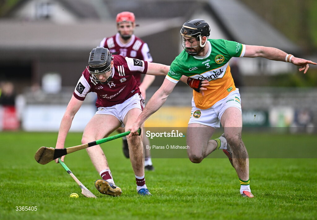 22 February 2026; Jason Rabbitte of Galway in action against Ben Conneely of Offaly during the Allianz Hurling League Division 1A match between Offaly and Galway at St Brendan's Park in Birr, Offaly. Photo by Piaras Ó Mídheach/Sportsfile