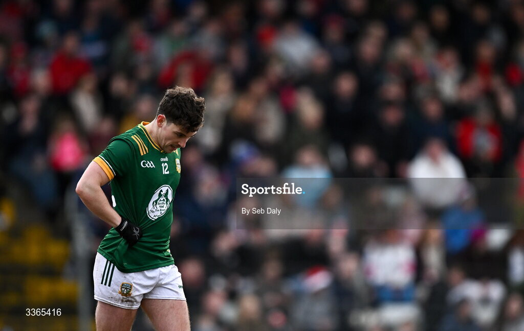 22 February 2026; James Conlon of Meath reacts after failing to convert a chance on goal during the Allianz Football League Division 2 match between Cork and Meath at Páirc Ui Rinn in Cork. Photo by Seb Daly/Sportsfile