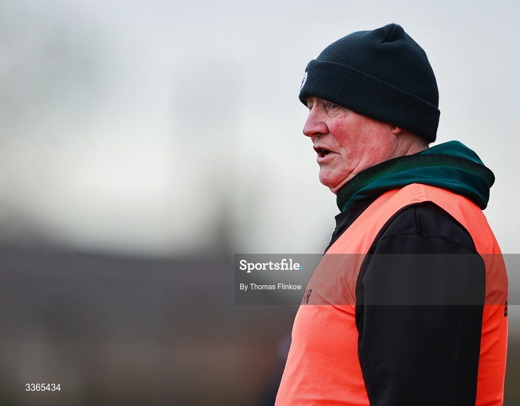 22 February 2026; Carlow manager Pat Bennett during the Allianz Hurling League Division 1A match between Antrim and Carlow at Corrigan Park in Belfast. Photo by Thomas Flinkow/Sportsfile