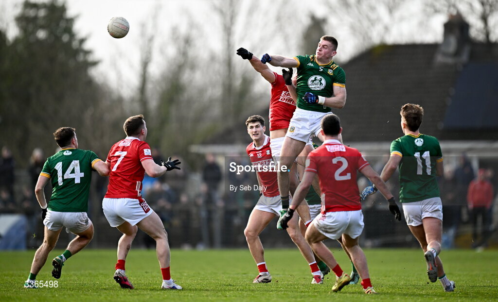 22 February 2026; Jack Flynn of Meath in action against Colm O’Callaghan of Cork during the Allianz Football League Division 2 match between Cork and Meath at Páirc Ui Rinn in Cork. Photo by Seb Daly/Sportsfile