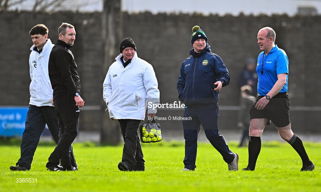 22 February 2026; Offaly manager Johnny Kelly in conversation with Johnny Murphy at half-time during the Allianz Hurling League Division 1A match between Offaly and Galway at St Brendan's Park in Birr, Offaly. Photo by Piaras Ó Mídheach/Sportsfile
