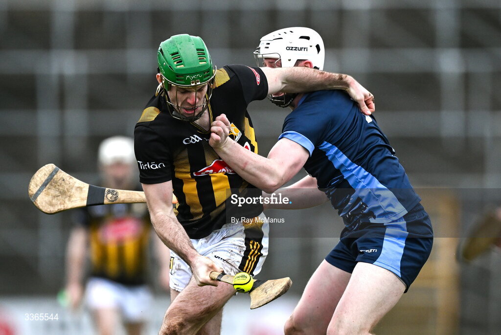 22 February 2026; Eoin Cody of Kilkenny is tackled by Shane Bennett of Waterford during the Allianz Hurling League Division 1A match between Kilkenny and Waterford at UPMC Nowlan Park in Kilkenny. Photo by Ray McManus/Sportsfile