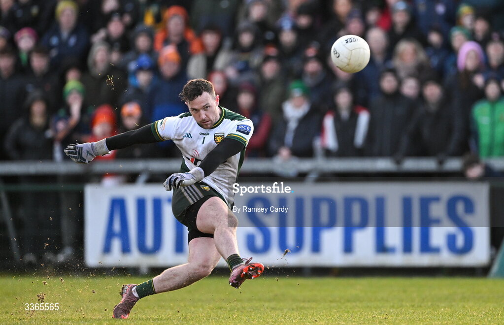 22 February 2026; Donegal goalkeeper Gavin Mulreany kicks a free during the Allianz Football League Division 1 match between Armagh and Donegal at BOX-IT Athletic Grounds in Armagh. Photo by Ramsey Cardy/Sportsfile