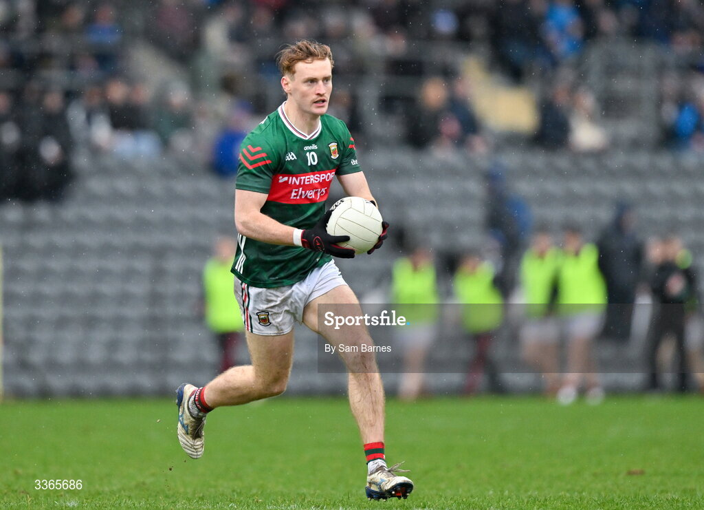 22 February 2026; Jack Carney of Mayo during the Allianz Football League Division 1 match between Monaghan and Mayo at St Tiernach's Park in Clones, Monaghan. Photo by Sam Barnes/Sportsfile