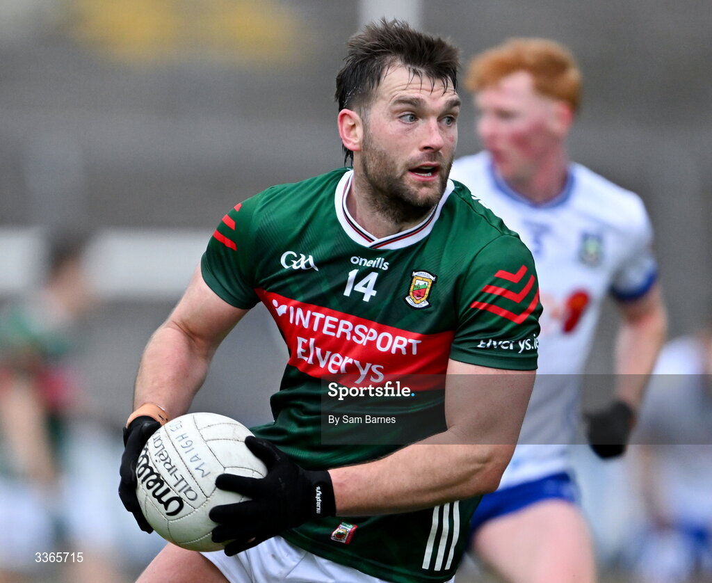 22 February 2026; Aidan O’Shea of Mayo during the Allianz Football League Division 1 match between Monaghan and Mayo at St Tiernach's Park in Clones, Monaghan. Photo by Sam Barnes/Sportsfile