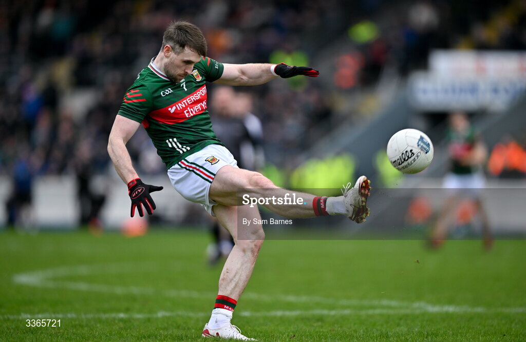 22 February 2026; Paddy Durcan of Mayo during the Allianz Football League Division 1 match between Monaghan and Mayo at St Tiernach's Park in Clones, Monaghan. Photo by Sam Barnes/Sportsfile