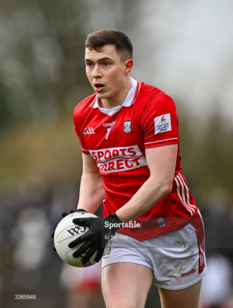 22 February 2026; Luke Fahy of Cork during the Allianz Football League Division 2 match between Cork and Meath at Páirc Ui Rinn in Cork. Photo by Seb Daly/Sportsfile
