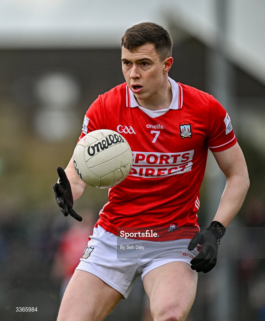 22 February 2026; Luke Fahy of Cork during the Allianz Football League Division 2 match between Cork and Meath at Páirc Ui Rinn in Cork. Photo by Seb Daly/Sportsfile