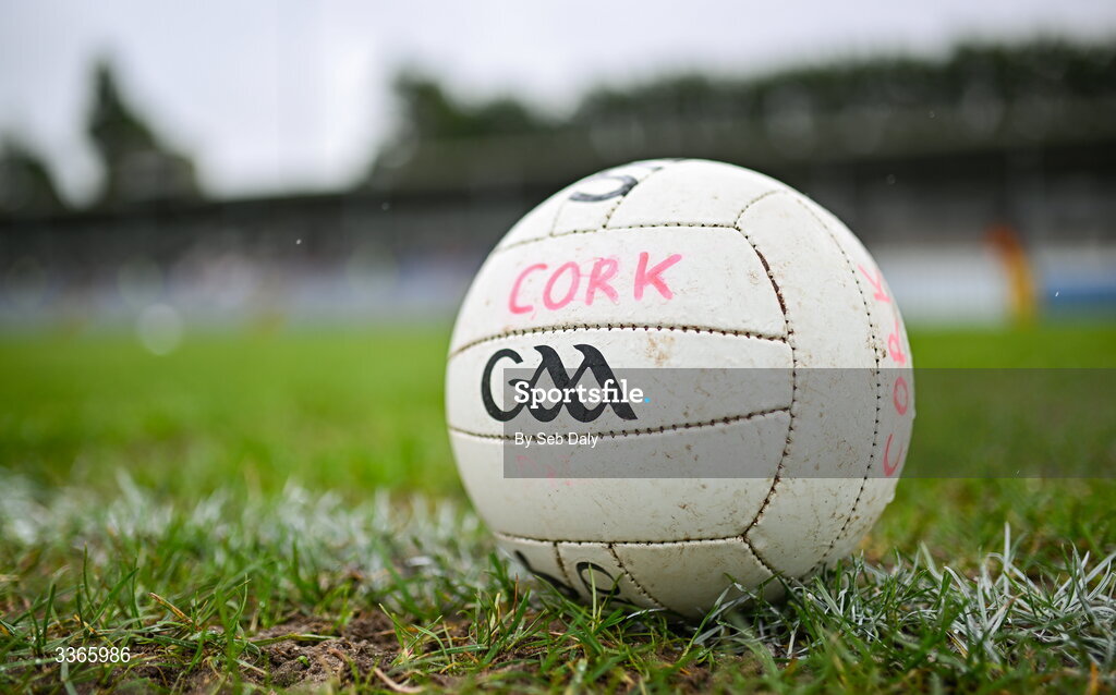 22 February 2026; A football on the pitch before the Allianz Football League Division 2 match between Cork and Meath at Páirc Ui Rinn in Cork. Photo by Seb Daly/Sportsfile