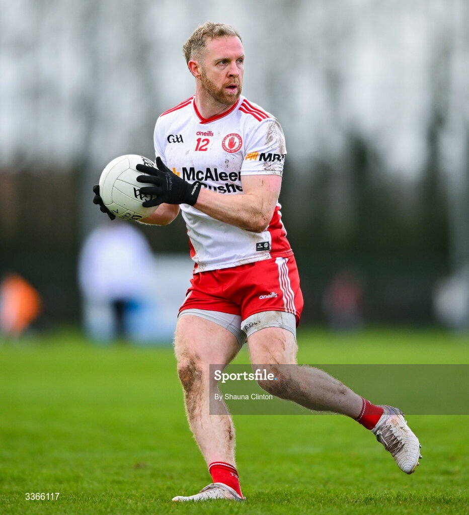 22 February 2026; Frank Burns of Tyrone during the Allianz Football League Division 2 match between Louth and Tyrone at DEFY Pairc Mhuire in Ardee, Louth. Photo by Shauna Clinton/Sportsfile