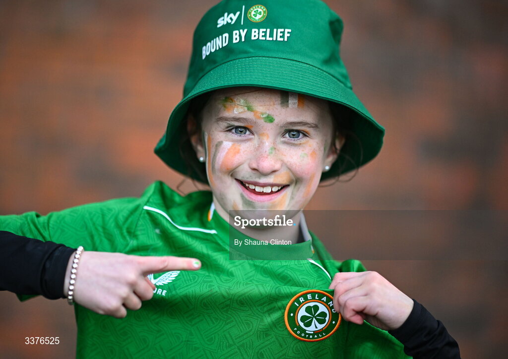 3 March 2026; Republic of Ireland supporter Anna Connolly, from Galway, before the 2027 FIFA Women’s World Cup Qualifier match between Republic of Ireland and France at Tallaght Stadium in Dublin. Photo by Shauna Clinton/Sportsfile