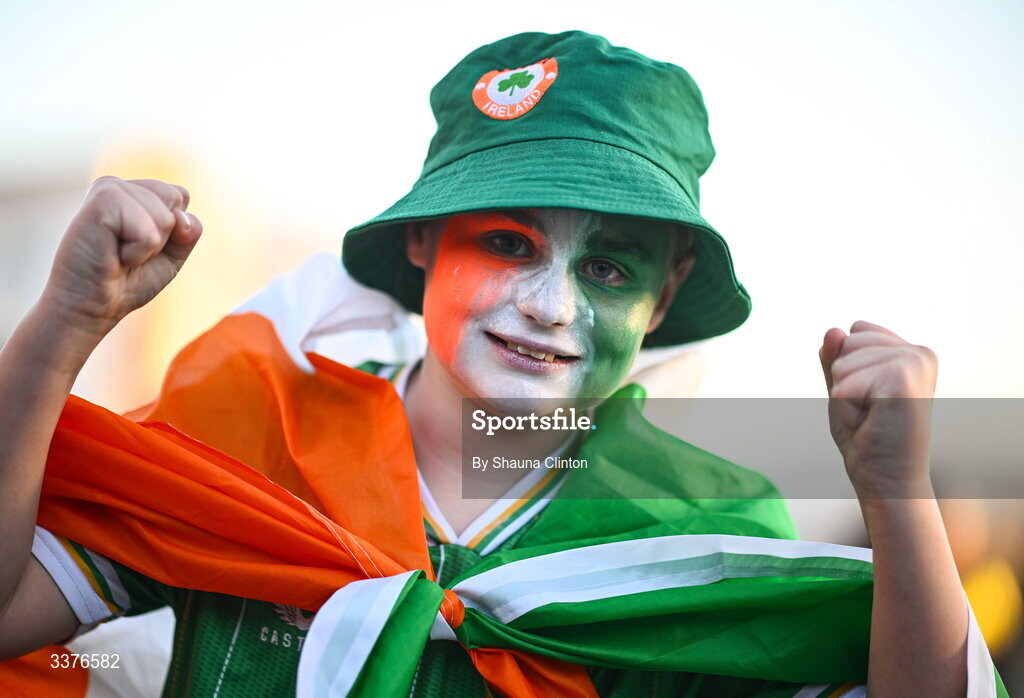 3 March 2026; Republic of Ireland supporter Katie Sheridan before the 2027 FIFA Women’s World Cup Qualifier match between Republic of Ireland and France at Tallaght Stadium in Dublin. Photo by Shauna Clinton/Sportsfile