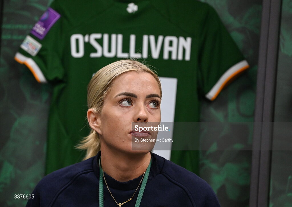 3 March 2026; Denise O’Sullivan of Republic of Ireland in the dressing room before the 2027 FIFA Women’s World Cup Qualifier match between Republic of Ireland and France at Tallaght Stadium in Dublin. Photo by Stephen McCarthy/Sportsfile