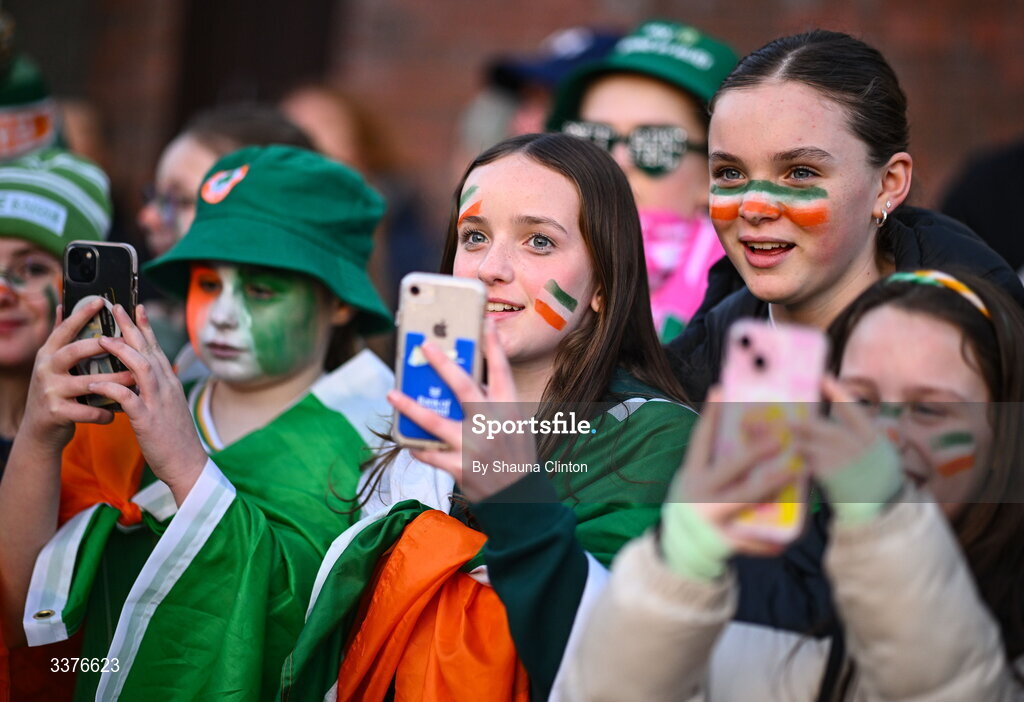 3 March 2026; Republic of Ireland supporters before the 2027 FIFA Women’s World Cup Qualifier match between Republic of Ireland and France at Tallaght Stadium in Dublin. Photo by Shauna Clinton/Sportsfile