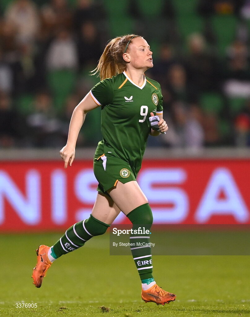 3 March 2026; Amber Barrett of Republic of Ireland during the 2027 FIFA Women’s World Cup Qualifier match between Republic of Ireland and France at Tallaght Stadium in Dublin. Photo by Stephen McCarthy/Sportsfile