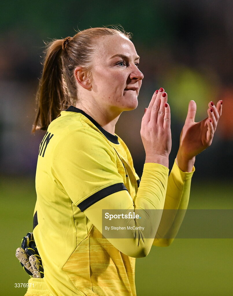3 March 2026; Republic of Ireland goalkeeper Courtney Brosnan applauds supporters after her side's defeat in the 2027 FIFA Women’s World Cup Qualifier match between Republic of Ireland and France at Tallaght Stadium in Dublin. Photo by Stephen McCarthy/Sportsfile