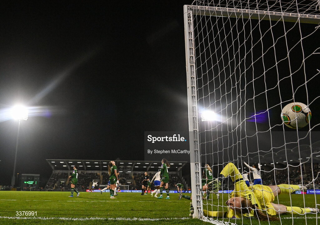 3 March 2026; Republic of Ireland players react after conceding their second goal during the 2027 FIFA Women’s World Cup Qualifier match between Republic of Ireland and France at Tallaght Stadium in Dublin. Photo by Stephen McCarthy/Sportsfile