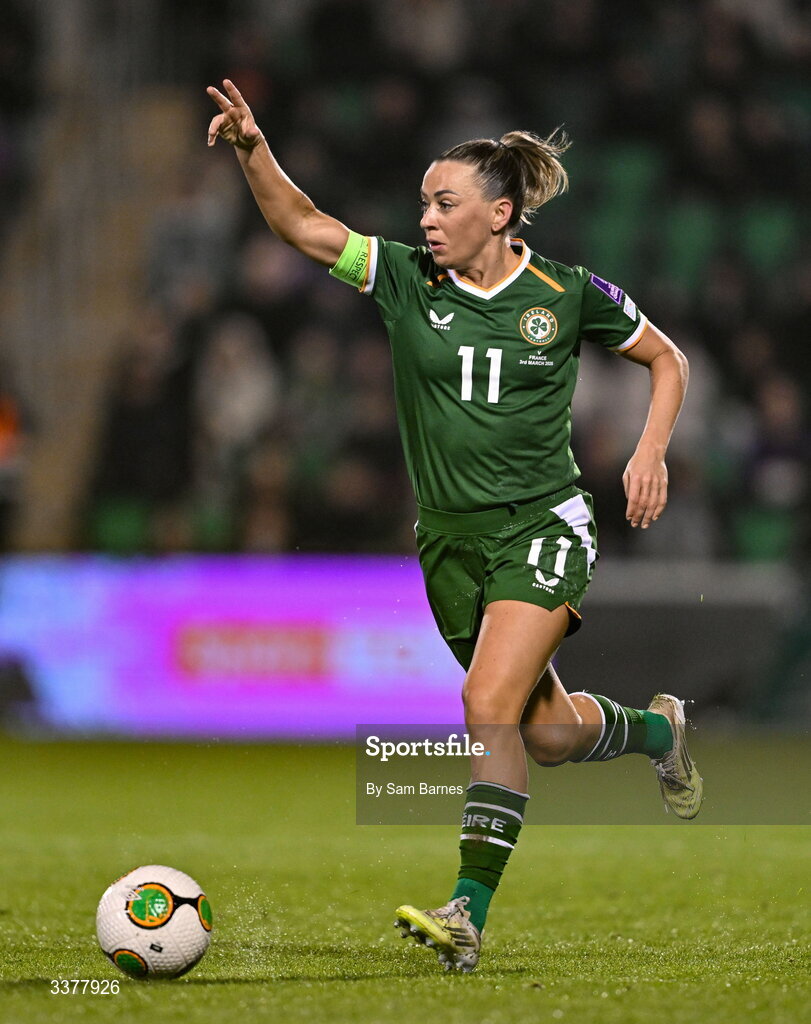 3 March 2026; Katie McCabe of Republic of Ireland during the 2027 FIFA Women’s World Cup Qualifier match between Republic of Ireland and France at Tallaght Stadium in Dublin. Photo by Sam Barnes/Sportsfile