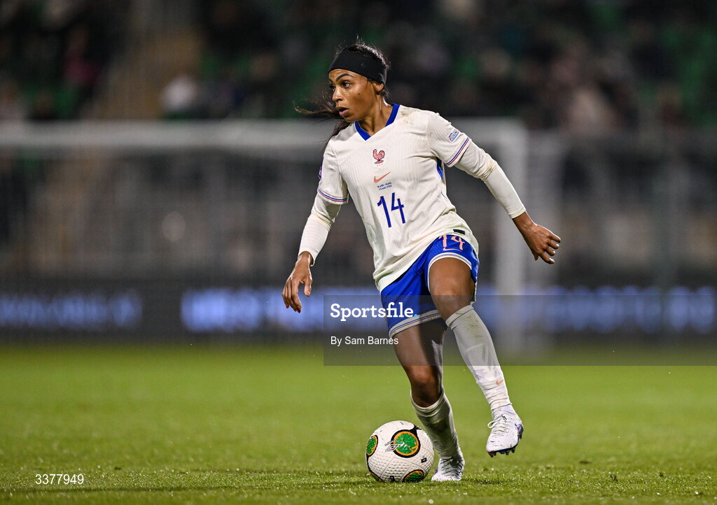 3 March 2026; Perle Morroni of France during the 2027 FIFA Women’s World Cup Qualifier match between Republic of Ireland and France at Tallaght Stadium in Dublin. Photo by Sam Barnes/Sportsfile
