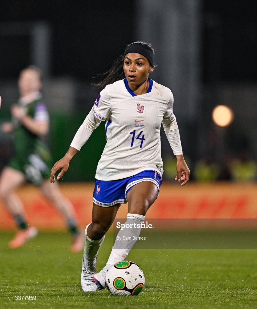3 March 2026; Perle Morroni of France during the 2027 FIFA Women’s World Cup Qualifier match between Republic of Ireland and France at Tallaght Stadium in Dublin. Photo by Sam Barnes/Sportsfile