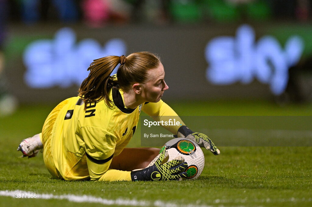 3 March 2026; Republic of Ireland goalkeeper Courtney Brosnan during the 2027 FIFA Women’s World Cup Qualifier match between Republic of Ireland and France at Tallaght Stadium in Dublin. Photo by Sam Barnes/Sportsfile