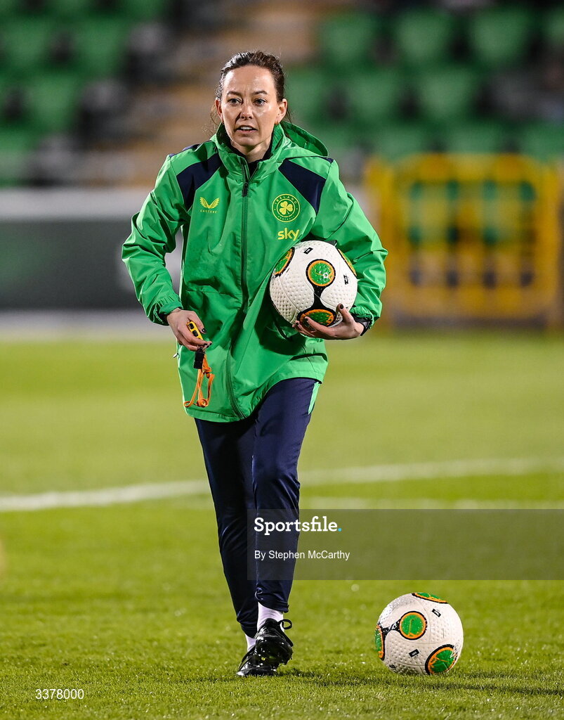 3 March 2026; Republic of Ireland assistant coach Amber Whiteley before the 2027 FIFA Women’s World Cup Qualifier match between Republic of Ireland and France at Tallaght Stadium in Dublin. Photo by Stephen McCarthy/Sportsfile