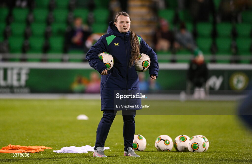 3 March 2026; Republic of Ireland equipment officer Rachel O'Hanlon before the 2027 FIFA Women’s World Cup Qualifier match between Republic of Ireland and France at Tallaght Stadium in Dublin. Photo by Stephen McCarthy/Sportsfile